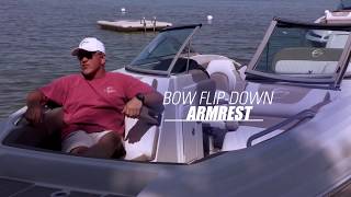 The Crownline E24 XS features a modern deck boat–inspired bowrider layout that maximizes interior space while maintaining the sporty styling Crownline is known for. Its wide beam provides exceptional stability and plenty of room for passengers to move around comfortably. The large open bow seating area is perfect for relaxing and enjoying the views, while the spacious cockpit offers additional seating designed for conversation, comfort, and socializing throughout the day.